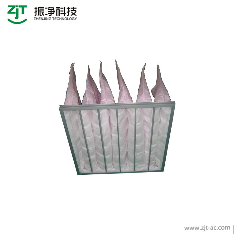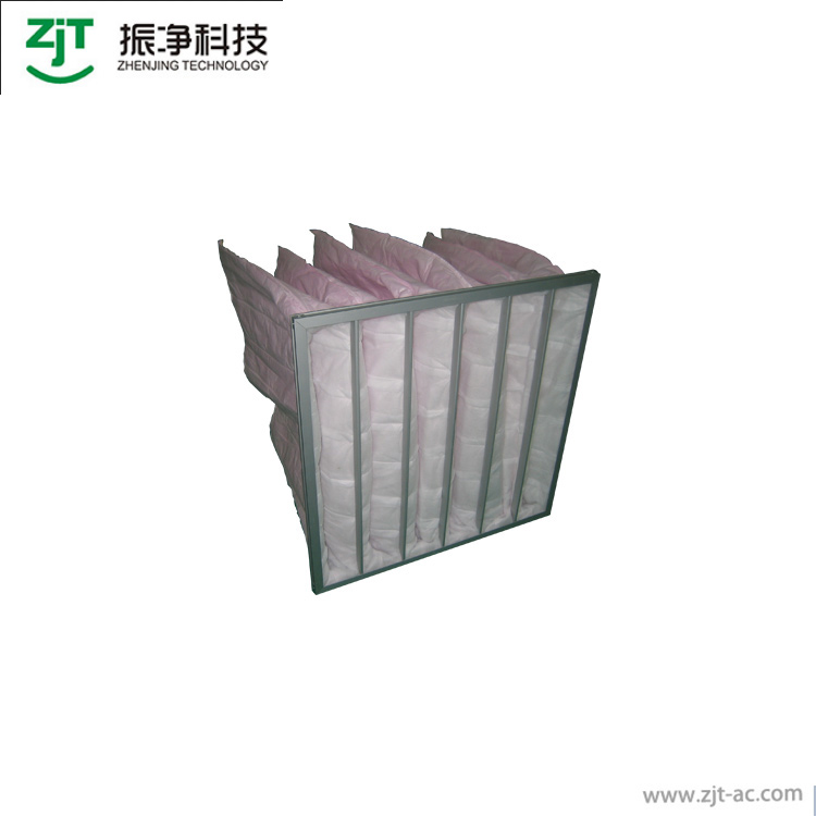 本公司采用的濾材為三層濾料均勻熱熔粘合。第一層粗纖維過濾棉捕捉空氣中較大的塵埃,較細(xì)的纖維濾紙捕捉空氣中較小的塵埃,最外層無紡布為強(qiáng)化保護(hù)層。合理的三層設(shè)計(jì)使產(chǎn)品具有優(yōu)良的性能,牢固的熱熔技術(shù)避免了風(fēng)壓產(chǎn)生的泄露,隔網(wǎng)避免了袋與袋之間的貼合,更加細(xì)化了送風(fēng)區(qū)域,降低了阻力,并使容塵量達(dá)到了最大。